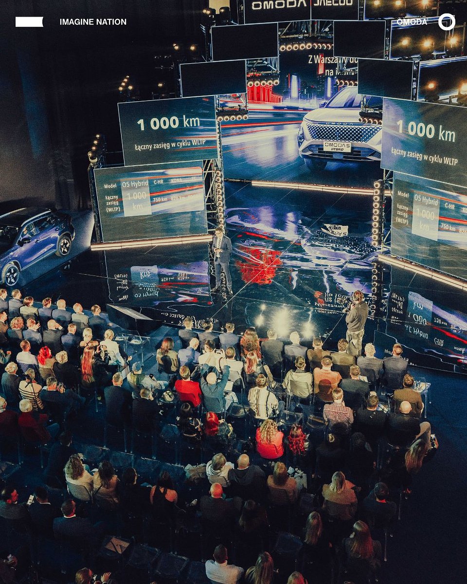 Tu najważniejsze było podkreślenie odrębnej tożsamości każdego z pojazdów. Na potrzeby prezentacji scenicznej Imagine Nation zbudowało przestrzenną instalację z diodowych sześcianów, na której mogliśmy wyświetlać wizualizacje o wyjątkowej głębi. Obrazy te pomogły nam umieścić oba samochody w ich naturalnym środowisku: dla Jaecoo były to surowe krajobrazy górskich dróg, dla OMODY futurystyczne miasto i tętniącym życiem miasto. Dzięki temu natychmiast budowaliśmy kontekst uwypuklający konkretne zalety pojazdów w praktycznych życiowych sytuacjach.